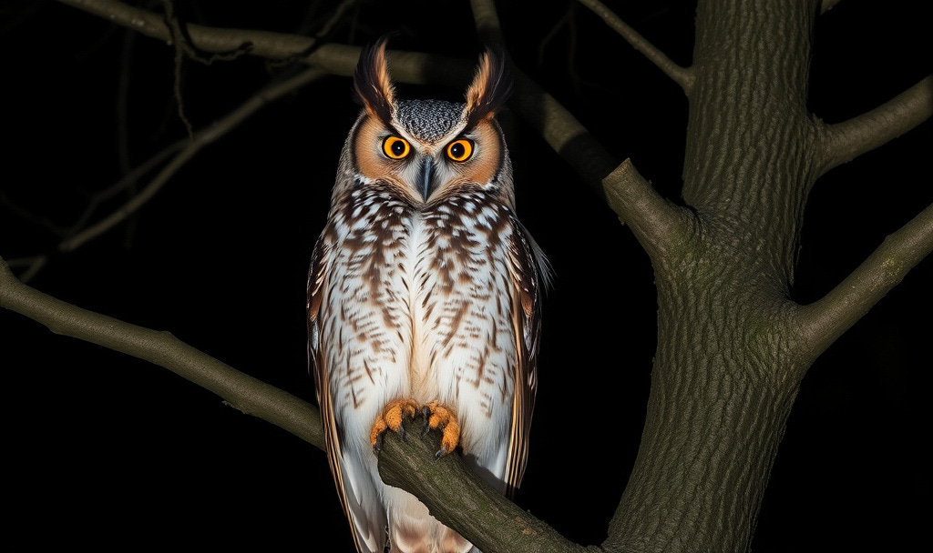 A great horned owl hoots from a nearby tree branch, providing the perfect intro to our bonfire confessions.